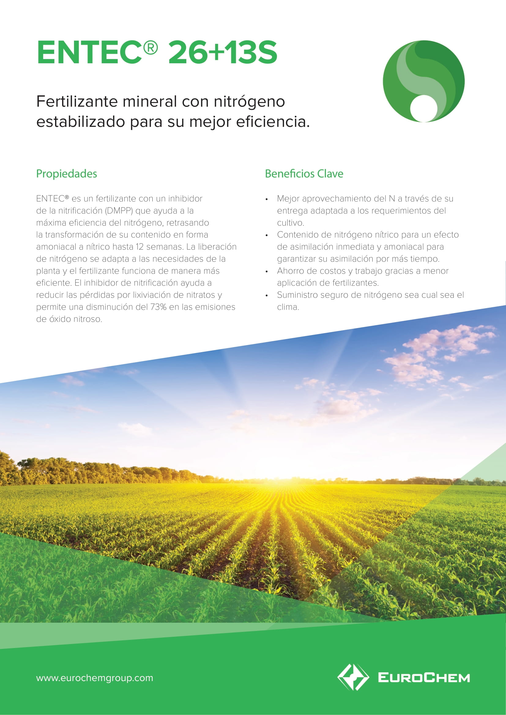ENTEC® es un fertilizante con un inhibidor de la nitrificación (DMPP) que ayuda a la máxima eficiencia del nitrógeno, retrasando la transformación de su contenido en forma amoniacal a nítrico hasta 12 semanas.