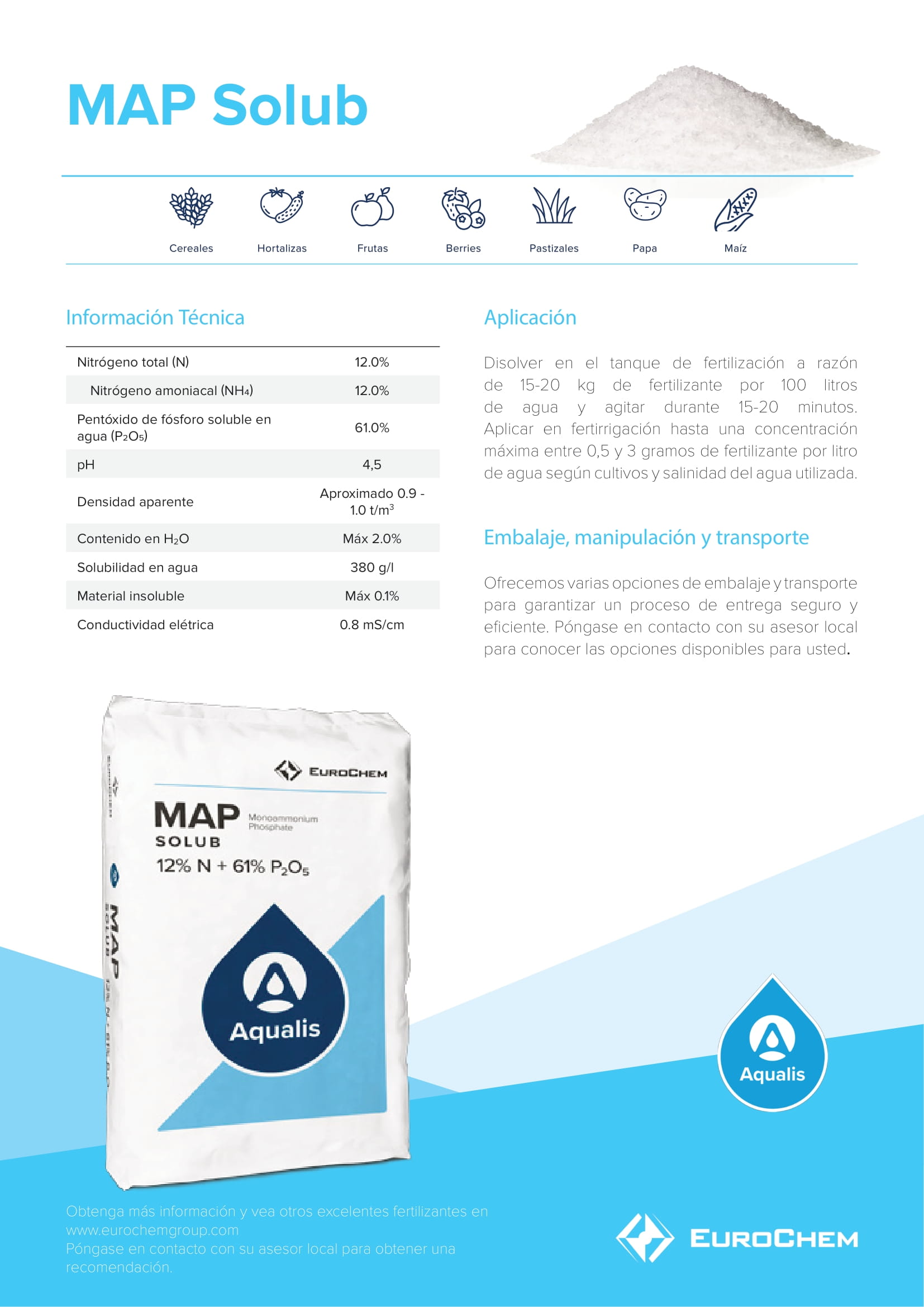 MAP solub es un fertilizante de fosfato monoamónico totalmente soluble en agua en forma de polvo cristalino.